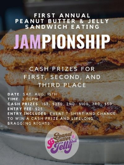 Peanut Butter & Jelly Deli, the world’s largest peanut butter and jelly shop, is announcing The Jampionship: the first and largest peanut butter and jelly sandwich eating contest on the globe.